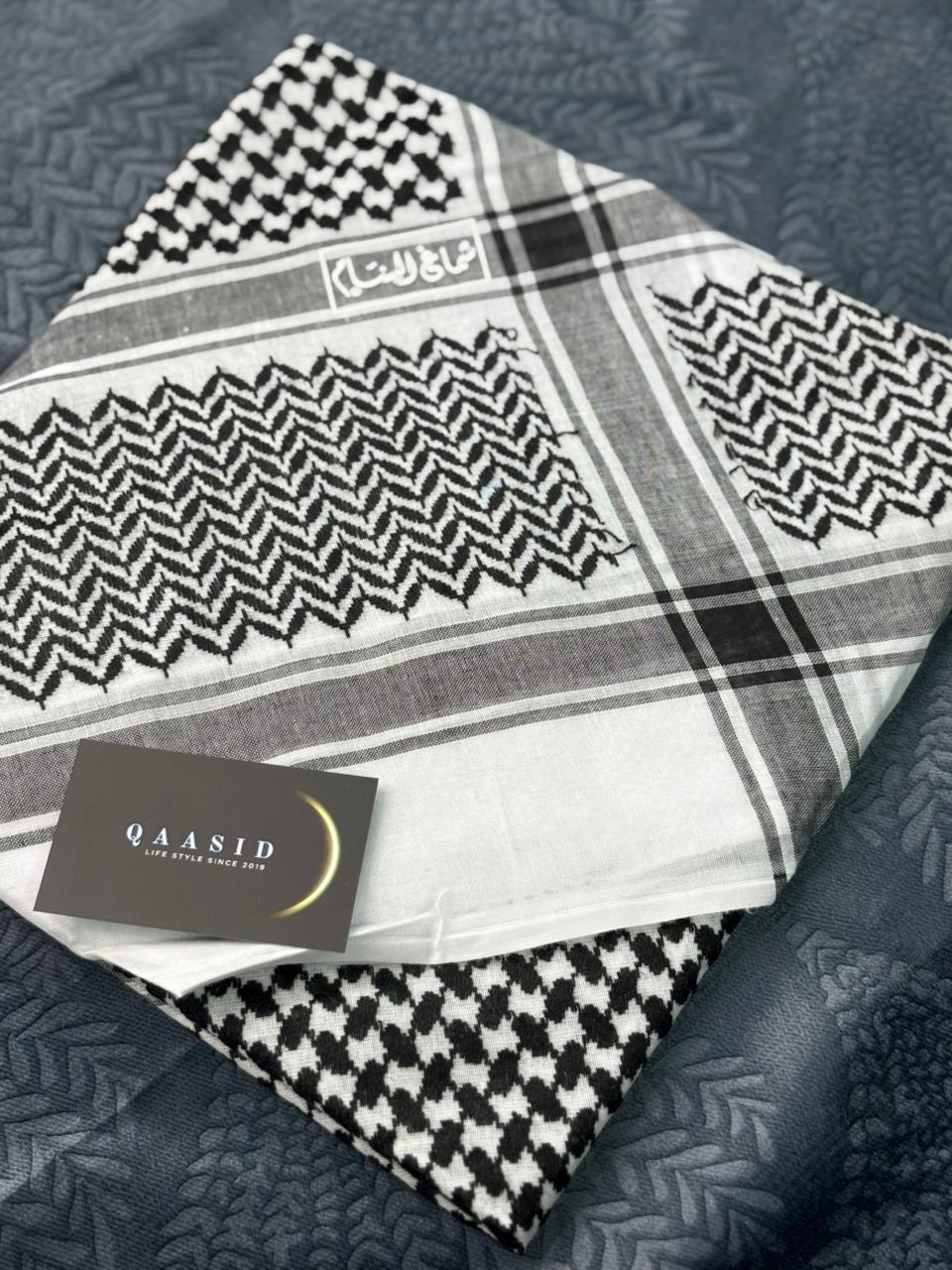 The Classic Luxury Shemagh Scarf can serve as either a head wrap or a stylish accessory when paired with a Qaasid.