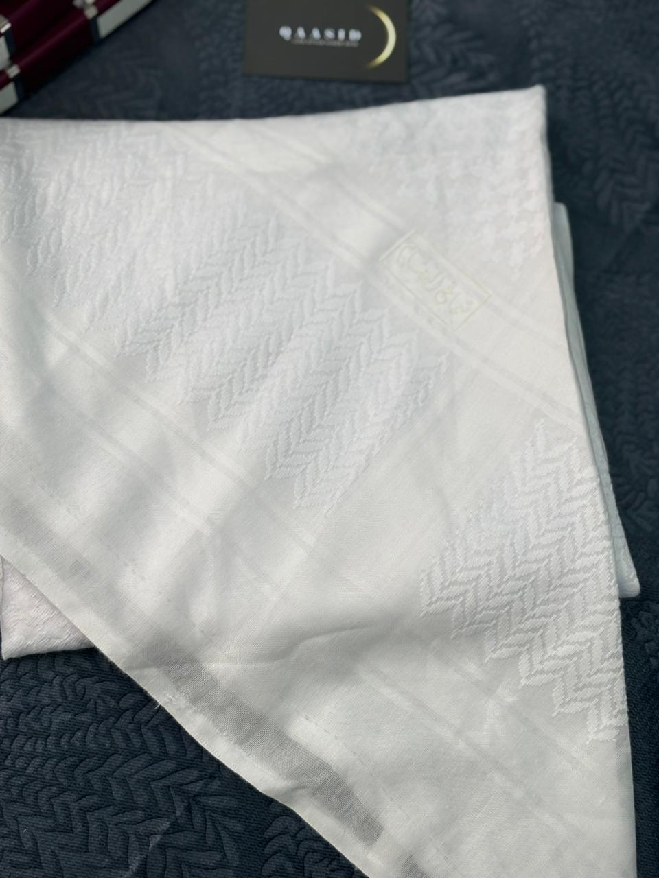 The Classic Luxury Shemagh Scarf can serve as either a head wrap or a stylish accessory when paired with a Qaasid.
