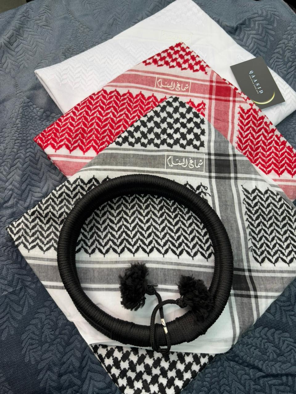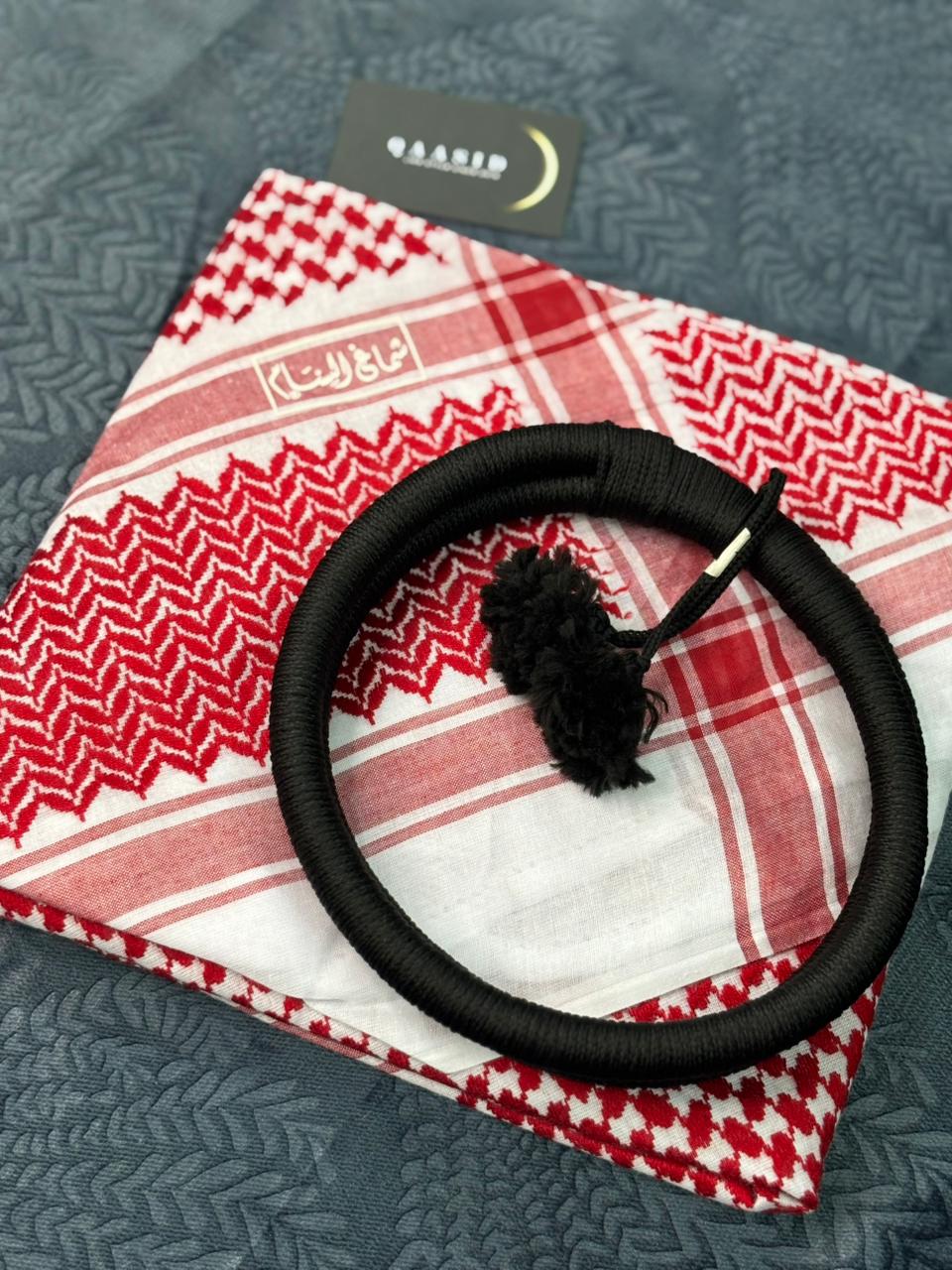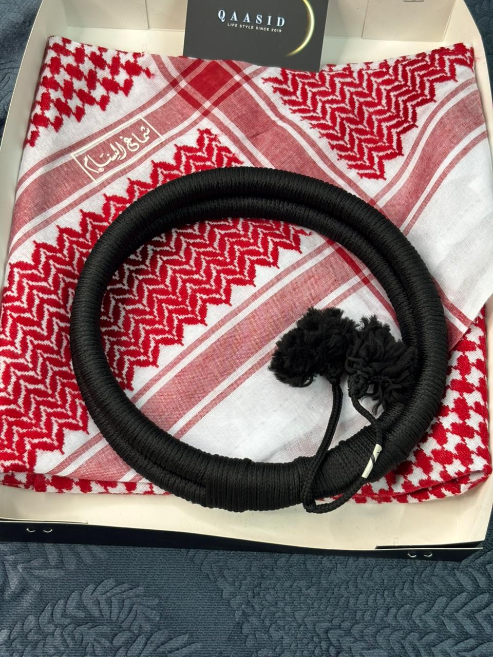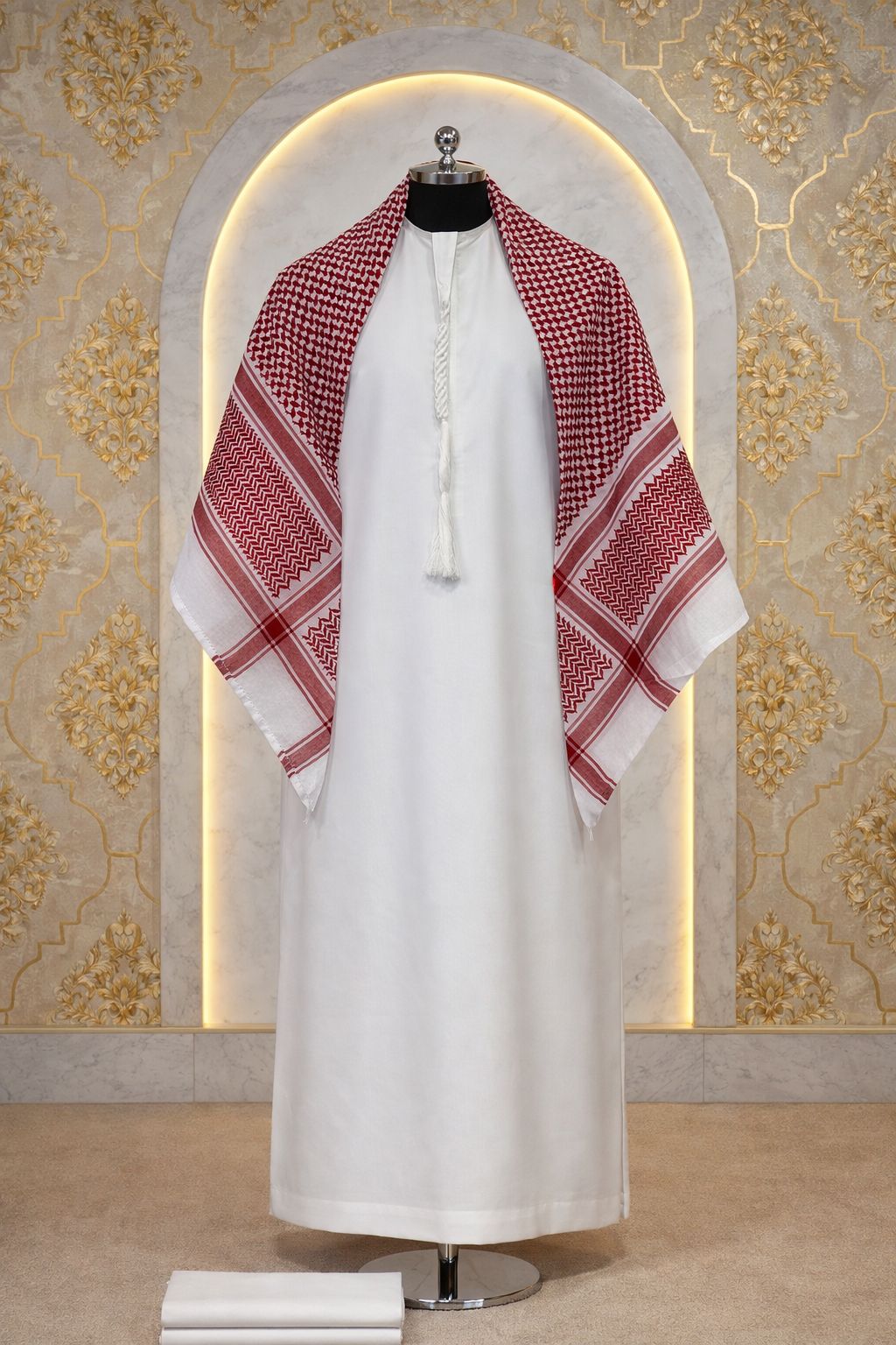 Luxury Shemagh Keffiyeh Scarf | 55″ x 55″ | Red & White with Bira Belt/Agal